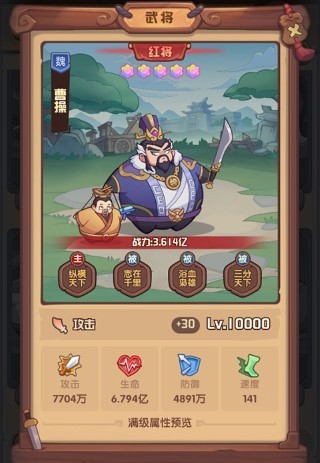 每个武将根据职业和品质的不同,拥有不同的技能和属性;无论是技能搭配还是技能释放顺序,玩家都可以根据自己的策略搭配出不同的组合,实现多变的战斗效果;
